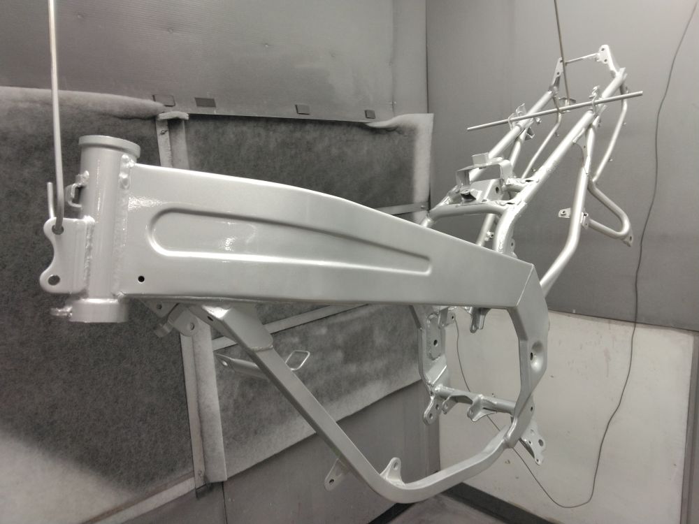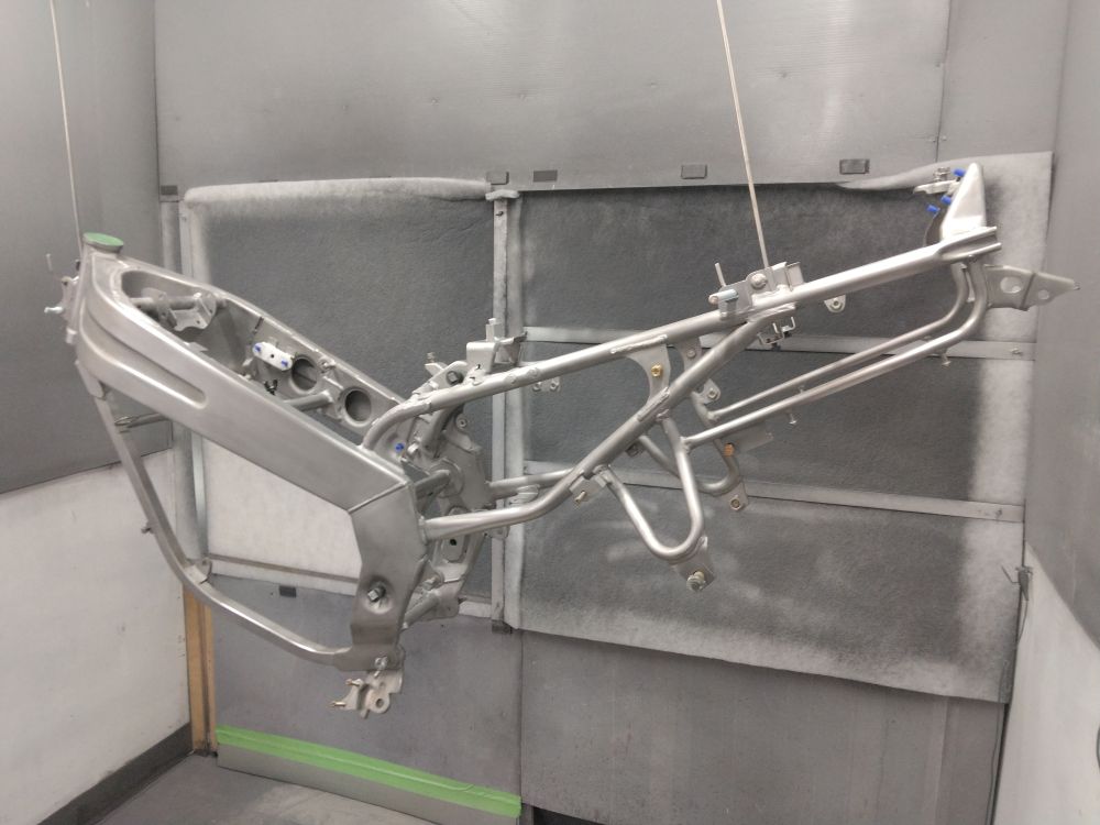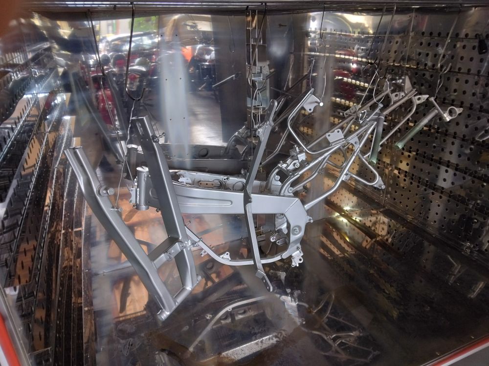 今回フレーム、スイングアーム、その他小物も一緒にご依頼いただきましたので乾燥器が込み合ってました。オートバイの場合、レストアでのご依頼が多くありますのでリフレッシュをお考えのお客様はお気軽にご相談ください。